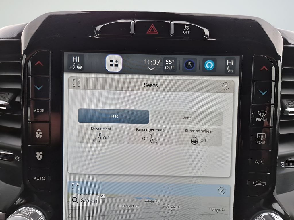 Cold Weather Group: Engine Block Heater; MOPAR Winter Front Grille Cover. Laramie Level 1 Equipment Group: Google Android Auto; SiriusXM Radio Service; Blind Spot and Cross Path Detection; Power Adjustable Pedals with Memory; For Details. Visit DriveUconnect.com; For More Info. Call 800-643-2112; Integrated Voice Command with Bluetooth®; 12" Touchscreen Display; Auto Power-Folding Mirrors; Front LED Fog Lamps; Mirror Running Lights; Alexa Built-In; Apple CarPlay; Power Adjustable Convex Aux Mirrors; Forward and Reverse Utility Lights; Disassociated Touchscreen Display; Remote Tailgate Release; 2nd Row in Floor Storage Bins; Rear Window Defroster; Rain Sensitive Windshield Wipers; Rear Power Sliding Window; Connectivity - US/Canada; GPS Navigation; 4G LTE Wi-Fi Hot Spot; GPS Antenna Input; Exterior Mirrors with Heating Element; Auto Dim Exterior Mirror; SiriusXM with 360L; Global Telematics Box Module; Connected Travel and Traffic Services; LED Reflector Headlamps; Foam Bottle Insert (door Trim Panel); Black Exterior Mirrors; Off-Road Information Pages; Selectable Tire Fill Alert; Trailer Tow Pages; HD Radio; Uconnect 5 Navigation with 12.0" Display Radio; Power Heated Fold Telescopic Mirrors with Memory; Exterior Mirrors with Supplemental Signals; Exterior Mirrors Courtesy Lamps; Auto High Beam Headlamp Control; Chrome Exterior Mirrors; Exterior Mirrors with Memory; Power Adjust Mirrors; Power Telescoping Mirrors; Radio/driver Seat/mirrors/pedals Memory; Auto Dim Exterior Passenger Mirror; Auto Adjust in Reverse Exterior Mirrors; ParkSense Front/rear Park Assist System. Quick Order Package 2HH Laramie. Night Edition: LT285/60R20E OWL On/off Road Tires; Black Exterior Truck Badging; Black Ram Head Tailgate Badge; 20" X 8.0" Black Painted Aluminum Wheels; Gloss Black Grille Billets/accents; Body Color Grille Surround; Black Interior Accents; Black Headlamp Bezels; Sport Performance Hood; Black Tail Lamp Bezels; ParkSense Front/rear Park Assist System. Bed Utility Group: MOPAR Spray in Bedliner; MOPAR Deployable Bed Step; LED Bed Lighting. Protection Group: Tow Hooks; Transfer Case Skid Plate Shield. RamBox Cargo Management System. Painted Flat Wheel-To-wheel Side Steps. MOPAR Spray in Bedliner. Blind Spot and Cross Path Detection. Leather Trimmed Bucket Seats. Anti-Spin Differential Rear Axle. Granite Crystal Met CC. Tow Hooks. Clearance Lamps. **Equipment listed is based on original vehicle build and subject to change. Please confirm the accuracy of the included equipment by calling the dealer prior to purchase.**