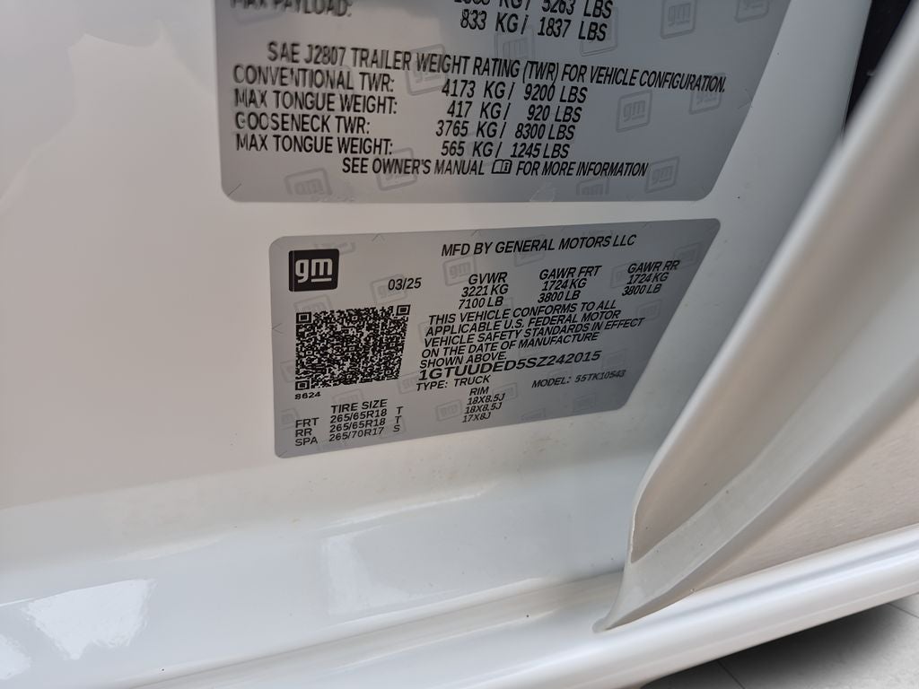Preferred Equipment Group 4SA: HD Rear Vision Camera; LED Cargo Area Lighting; Remote Vehicle Starter System; Electric Rear-Window Defogger; 5.3L EcoTec3 V8 Engine; Theft Deterrent System (unauthorized Entry); Chrome Header and Chrome Grille Insert Bars; 170 Amp Alternator; Auxiliary External Transmission Oil Cooler; Front Rain-Sensing Wipers; GMC Pro Safety; Trailering Package; 120-Volt Interior Power Outlet; 10-Speed Automatic Transmission; Front 40/20/40 Split-Bench Seat; 18" X 8.5" 6-Spoke Machined Aluminum Wheels; 2 Charge/data USB Ports; Steering Wheel Audio Controls; 2 type-C Charge-Only Rear USB Ports; Color-Keyed Carpeting Floor Covering; OnStar Services Capable; Power Front Passenger Windows with Express Up/down; Deep-Tinted Glass; 6-Speaker Audio System Feature; Power Rear Windows with Express Down; Integrated Trailer Brake Controller; SiriusXM with 360L Trial Subscription; Single Speed Transfer Case; Power Front Windows with Driver Express Up/down; Manual Tilt-Wheel and Telescoping Steering Column; Front Frame-Mounted Black Recovery Hooks; Keyless Open and Start; Wi-Fi Hotspot Capable; Perimeter Lighting; Push Button Start; Rear Wheelhouse Liners; Auto-Locking Rear Differential; Power Door Locks. **Equipment listed is based on original vehicle build and subject to change. Please confirm the accuracy of the included equipment by calling the dealer prior to purchase.**